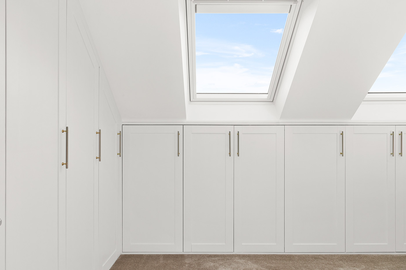 A key part of this project was the inclusion of custom-built storage, designed to make full use of awkward loft spaces.