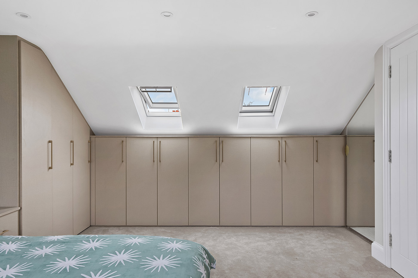 A key part of this project was the inclusion of custom-built storage, designed to make full use of awkward loft spaces.